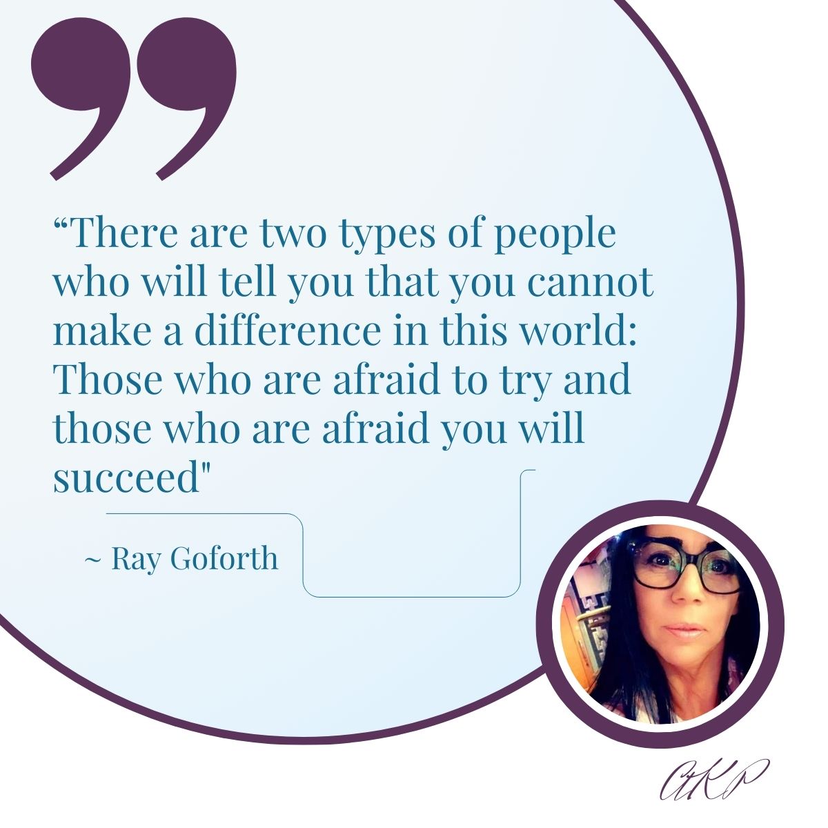 “There are two types of people who will tell you that you cannot make a difference in this world: Those who are afraid to try and those who are afraid you will succeed” ~ Ray Goforth